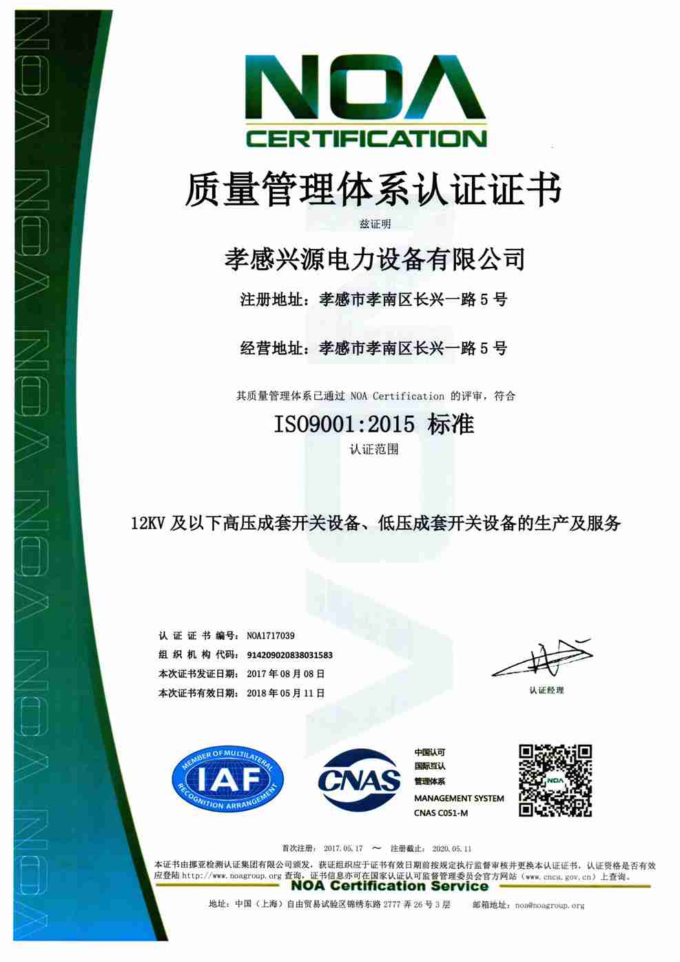 • 質量管理體系證書